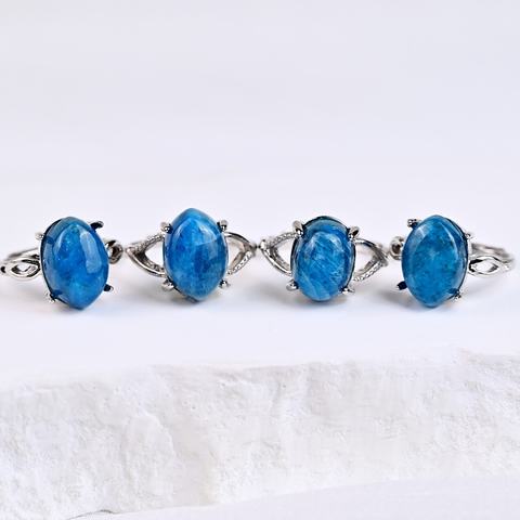 Wholesale Rough Stone Jewelry Women Ring Natural Gemstone Birthstone Bohemian Raw Blue Apatite Ring for Wedding