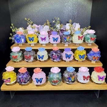손으로 조각 된 혼합 돌 에너지 크리스탈 민속 예술 실버 몸 딸기 석영 나비 장식